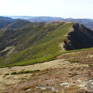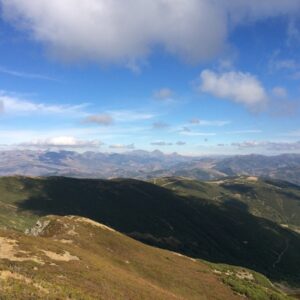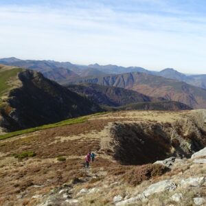 Descripción de la ruta: Partiendo de Rabanal de Arriba a la derecha de la fuente tomaremos el camino de “Los Molinos”. Llegamos a un primer cruce y seguimos por el camino de la izquierda rodeados de amplias praderías donde veremos una pequeña fuente y la señalización de la bajada a la “Cascada El Pimpanón” con agua del arroyo de la Brañina. Continuamos hasta alcanzar los molinos. Uno de ellos se encuentra en buen estado de conservación. Cruzamos el estrecho puente e iniciamos una prolongada subida por un sendero rodeado de una abundante variedad de árboles, hasta llegar al paraje de la Brañina. Una braña tan olvidada como bella en la que aún se aprecian 5 o 6 cabañas abandonadas. En la campera si tomamos el desvío de la izquierda llegamos a la braña de Cubacho. Nosotros cogeremos el desvío de la derecha para dar vista al Collado de Trasmundo. Una vez hemos llegado al collado, un sendero bien marcado nos llevará a la cima del Pico Miro de Rabón(1.981m).Ahora sólo nos queda crestear en dirección al collado que da acceso al Pico Nevadín; balcón desde el que podemos observar el macizo de las Ubiñas, el Catoute, el Cebolledo, el Cabril.. Continuamos cresteando con unas ligeras bajadas en las que tenemos que ayudarnos de las manos, pero sin más dificultad hasta alcanzar  Peña Vendimia. En este punto iniciaremos el descenso por una zona de campera hasta alcanzar el trazado de la pista de Cuetonidio. Fuente abrevadero. Seguiremos descendiendo por la pista de tierra hasta alcanzar la braña de Cubacho. Paraje con cabañas en perfecto estado de conservación donde incluso podemos disfrutar de las instalaciones del restaurante “La Salga” pertenecientes a una asociación de Rabanal.