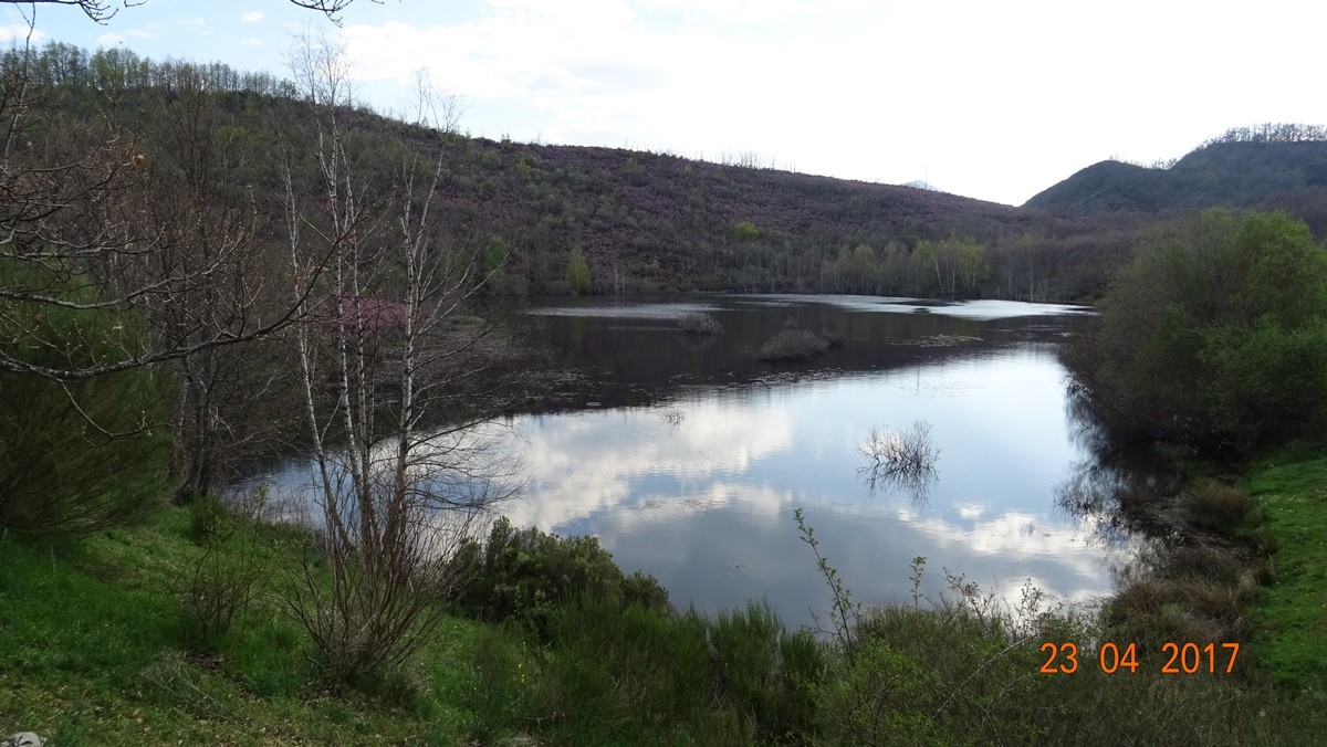 Descendemos por la parte opuesta a la subida por un sendero marcado. Precaución: hay grandes bloques de piedra, hay que ir con mucho cuidado y si van niños (no recomendable) extremar las precauciones. Llegamos a una zona de monte bajo para luego descender hacia una pradera. Continuamos muy cerca de un cierre que nos conducirá cerca de la braña de Robles y donde enlazaremos de nuevo con el recorrido de inicio de la ruta y la laguna del Castro.