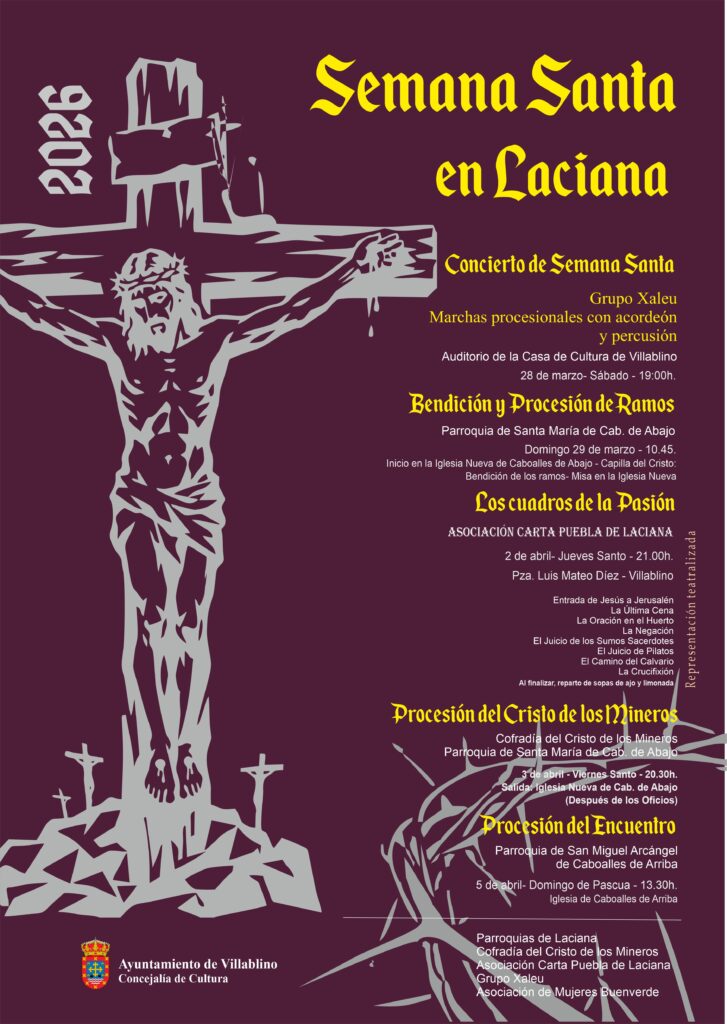 Cartel Semana Santa en Laciana Cuadros de la Pasión Concierto de Semana Santa: Marchas Procesionales Post navigationNextNext post:programa RELEVACyL para la continuidad de negocios localesPublicaciones Relacionadasprograma RELEVACyL para la continuidad de negocios localesPOP-UP RETAIL, Aprovechamiento de los Locales Comerciales VacíosTrail Running Center La Tierra del Oso, tres increíbles itinerarios acreditados por la RFEA en pleno corazón de la Reserva de la Biosfera Valle de Laciana (Villablino)SERVICIO PROVINCIAL DE PREVENCIÓN Y EXTINCIÓN DE INCENDIOS (BOMBEROS SEPEIS). TELÉFONOS DE EMERGENCIA.